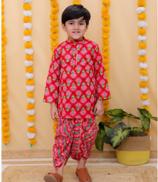 Add a splash of tradition to your child’s wardrobe with this stylish Cotton Kurta and Dhoti Set. Featuring a playful printed design, this outfit is perfect for festive gatherings, family events, or cultural celebrations. Made from breathable cotton, it ensures all-day comfort with a charming ethnic appeal.